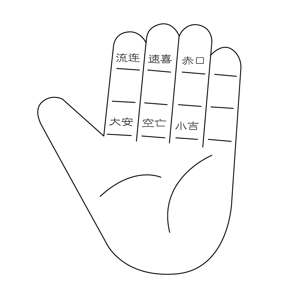 大安速喜小吉为阳,留连赤口空亡为阴